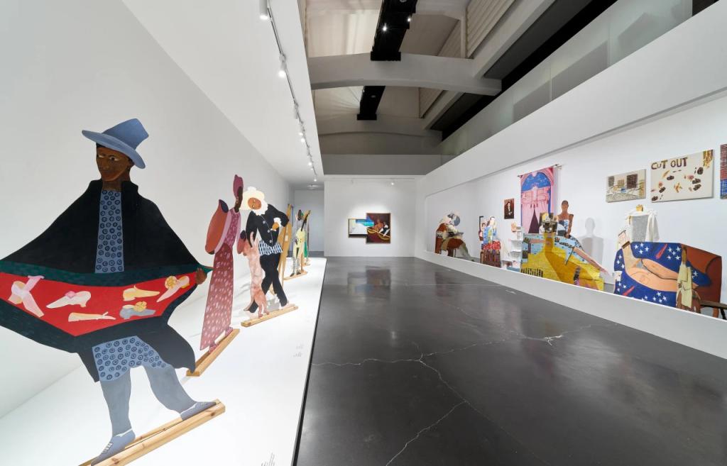 希米德常常将肖像绘于真人大小的人形立牌上,营造出强烈的戏剧性和空间感。这得益于希米德早年学习戏剧舞台设计,并对绘画媒介的物质性与表演性有着深切关注,她在多层次的叙述中利用多样化媒介,在挑战传统艺术媒介概念的同时,以独特视角质疑主流历史观和非裔社群长久以来所面对的社会政治障碍。展览现场,观众可以近距离欣赏到这些富有表现力的作品,感受艺术家通过思辨性的虚构,诗意地重述历史的独特魅力。